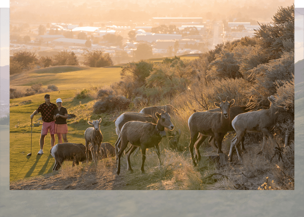 It’s common to see Big Horn sheep grazing near fairways or resting on rocky hillsides, creating a memorable and authentic Kamloops golf experience.