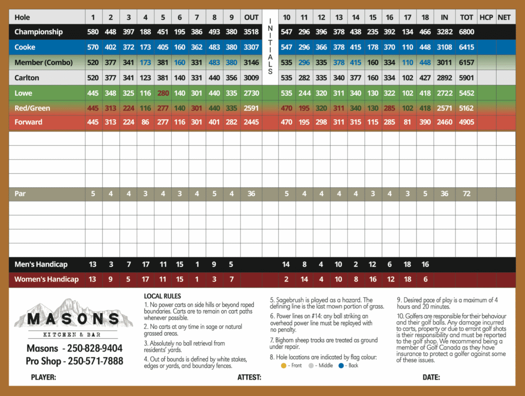 View the official Bighorn Golf and Country Club scorecard and get a detailed look at yardages, par, and hole-by-hole layout.
